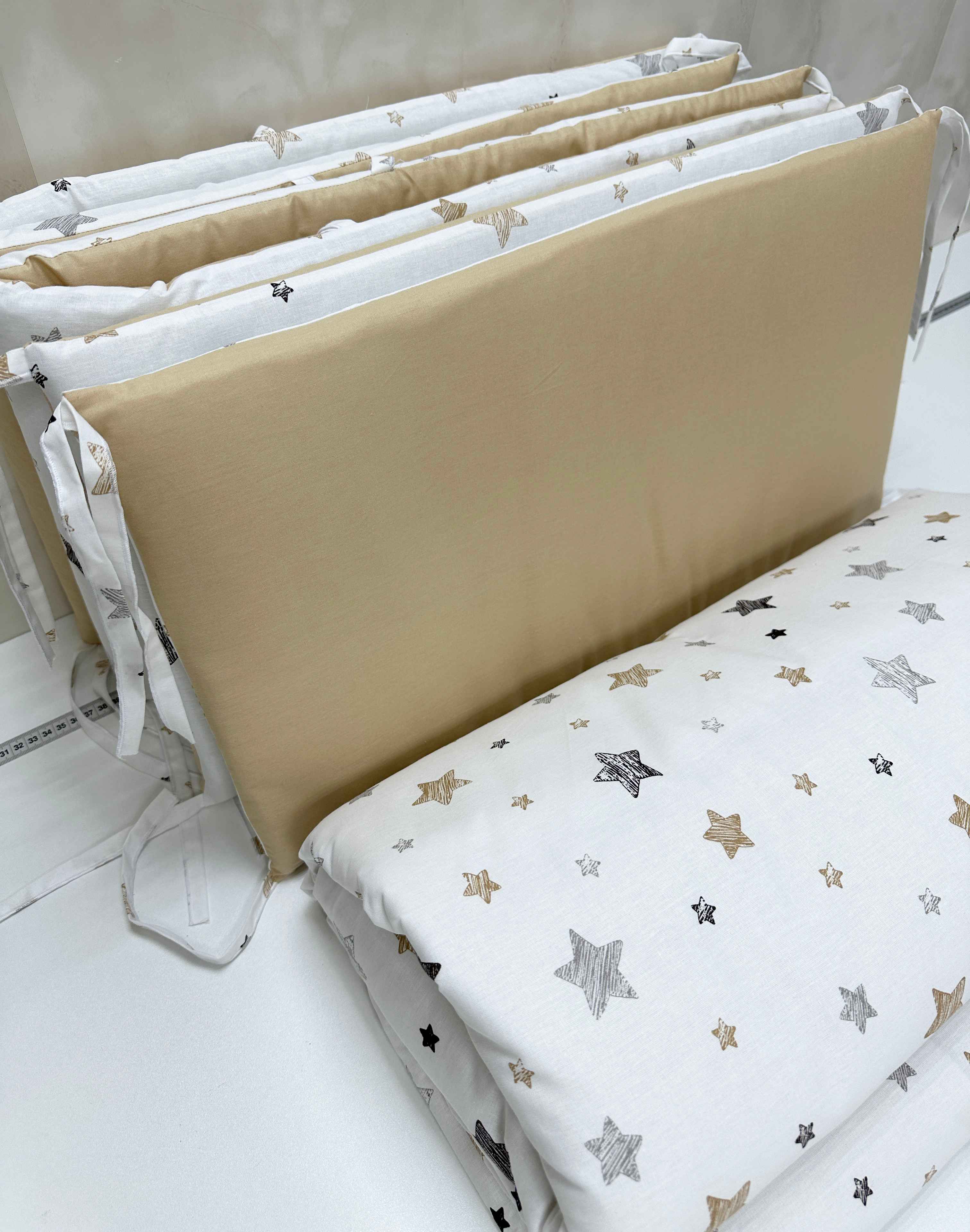 Данный предмет комплекта в кроватку представляет собой уплотнители, которые фиксируются на стенках детской кроватки с внутренней стороны. Существует две стороны покупателей, одни считают, что бампер в кроватку для новорожденных мешает поступлению воздуха к ребенку, а также препятствует его обзору, то есть ребенок не может следить за происходящим вокруг него. Еще один аспект – это убеждение в том, что бортик собирает пыль, которая может негативно отразиться на здоровье малыша. Мнения другой стороны, напротив, уверены в их необходимости. Они считают, что бортики в кроватку для новорожденных обеспечат безопасность их малышу.