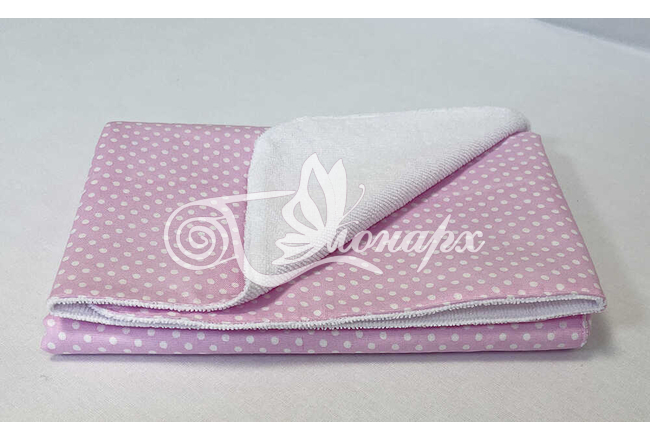 • Верхний слой – мулитон (изготовлена из - мягкой махры и непромокаемого слоя ПВХ). Благодаря такому строению на пеленке комфортно лежать (в отличие от клеенчатого или полиэтиленового непромокаемого слоя).